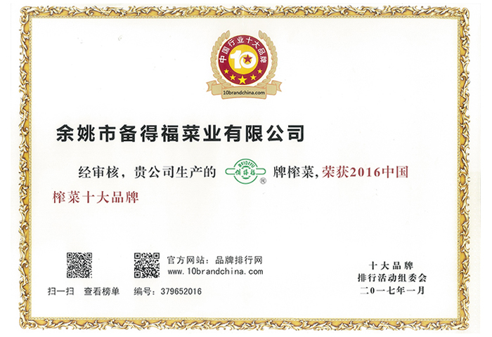 浙江備得福食品有限公司, 創建于1992年,是一家專業生產小包裝榨菜、泡菜等現代化農業企業,公司位 于美麗富饒,處處充滿商機和希望的開發熱土——杭州灣畔。滬杭甬高速公路、329國道在公司的南大門橫貫而過, 東臨深海大港——北侖港,西臨蕭山國際機場,北靠舉世矚目的杭州灣跨…【更多】